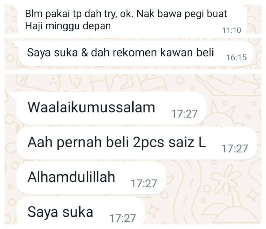 Jom tengok feedback mereka yang dah puas hati dengan Legging Wuduk